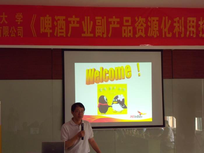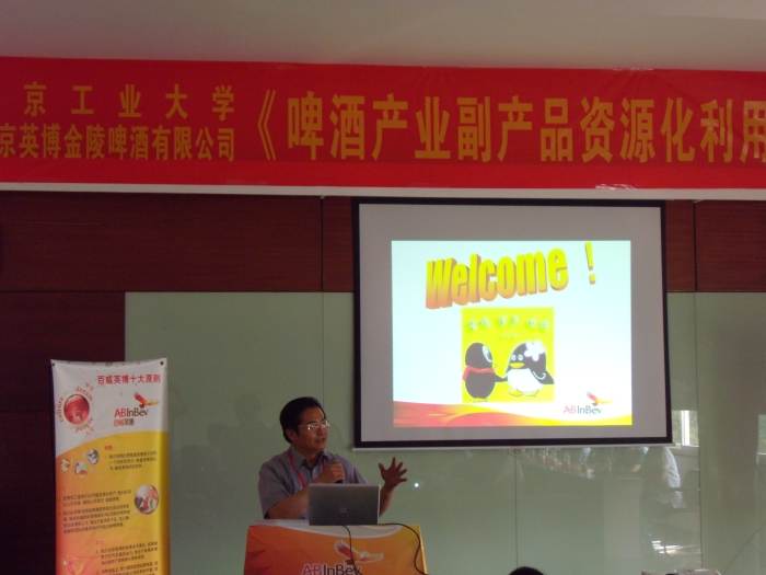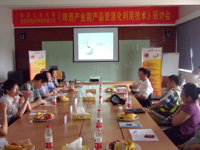 研讨会上,英博金陵啤酒有限公司环能部杜立宁经理着眼于2012年底要达到的环保指标,介绍了啤酒产业副产品资源化利用技术研发过程遇到的难题。公司生物能源与环境生物技术课题组成员周华教授,介绍了低品位生物资源利用的路径和前景。研讨会期间,与会人员实地考察了英博金陵啤酒的生产工艺流程,了解了啤酒产业副产品资源化利用技术难题的第一手资料。会议认为,双方一墙之隔,环保紧密关联,厂方亟待破解的难题正是公司生物能源与环境生物技术的创新指向。搞好双方的合作,对于英博金陵啤酒有限公司“做最佳的啤酒公司,酿造更美好的世界”,将从创新驱动的意义上产生一定的社会经济效益。