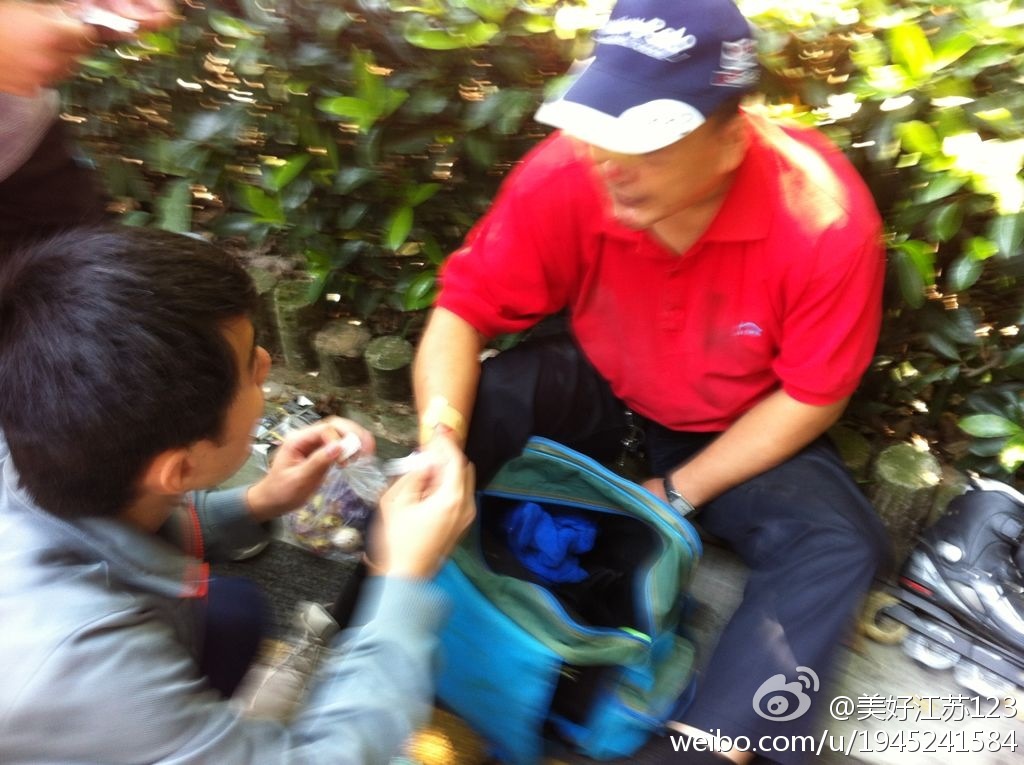昨日,南工大生工学科集群研究生会的同学在中山陵拓展基地旁看到一位轮滑的老人不慎摔倒,随即上前扶助问候老人,为老人贴上创口贴,待老人安然无恙后才放心离去。老人连声的致谢和游人赞许的目光,折射出对青年学子传递人间温暖的感动!