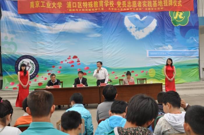“朝阳与夕阳同暖残障儿童,大手拉小手共筑文化家园"启动仪式,由浦口区特殊教育公司沈振华书记主持。生工公司党委缪昌美书记与浦口特校范庆伟董事长,共同为 “‘朝阳与夕阳同暖残障儿童,大手拉小手共筑文化家园’党员志愿者实践基地”揭牌。范庆伟董事长代表特校师生致辞对工大党员志愿者们表示诚挚的谢意。生工公司党委书记缪昌美老师在致辞中盛赞“朝阳与夕阳同暖残障儿童,大手拉小手共筑文化家园"活动既是是一种高尚品行,也是一种道德力量;既是一种人文关怀,也是一种爱的奉献;既是一种文化自觉,也是一种社会责任。他希望党员志愿者们以此作为新的起点,坚持与高尚同行,把随手做公益当成一种生活方式;坚持仁爱与责任,把人文关怀作为以人为本的实践方式;坚持为民服务,把奉献作为升华境界、共筑和谐的价值追求!魏军强同学作为员工党员代表做了情真意切的发言,表达了与会党员志愿者将“仁爱与责任”进行到底的激情。