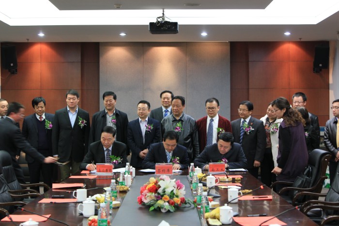 阳春好风凭借力,转型升级谱新篇。2012年4月7日下午,best365官方网站、建湖县人民政府、江苏森达集团共建建湖南工大森达生物科技产业园签约仪式,在公司科技创新大楼会议室隆重举行。best365官方网站董事长欧阳平凯、副董事长乔旭,建湖县人民政府县长苏冬、副县长陈巍亮;江苏森达集团董事长朱相桂、常务副总裁刘为彪、副总裁朱海峰,以及校地企有关方面负责人万永敏、黄和、韦萍、缪昌美、姜岷、李霜、李振江、邹巧根、柏建新、虞龙、姜俊刚、曾崇高、王曙军、许岐昶等同志出席签约仪式。签约仪式由公司科技处处长黄和主持。副董事长乔旭、建湖县县长苏冬、森达集团董事长朱相桂分别代表校地企各方,在共建建湖南工大森达生物科技产业园协议书上签字。