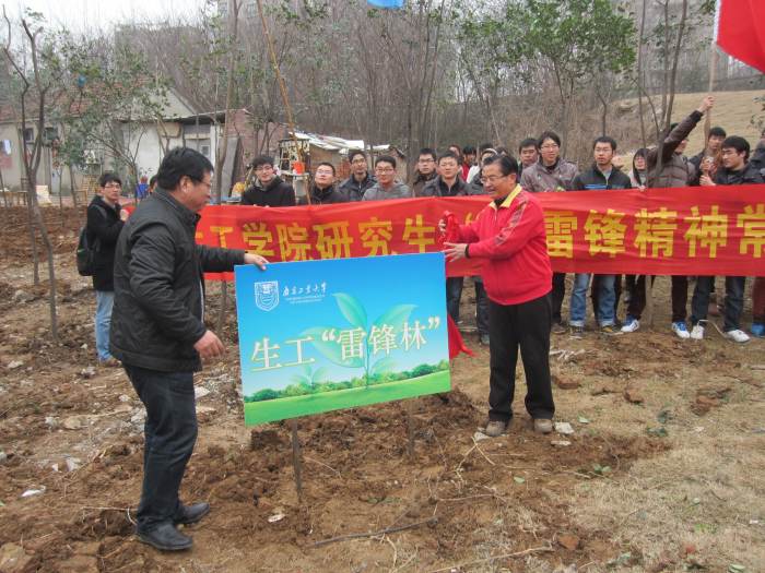 为表达best365官网研究生“植树铭志,让雷锋精神常青”的浓浓情意,同学们事前还制作了“生工雷锋林”标志牌,并邀请参加此次植树活动的缪昌美、吴敏老师共同为“生工雷锋林”揭牌。揭牌仪式后,缪昌美老师在点评讲话中对此次活动融“植树尽义务、添绿荣校园、铭志学雷锋”于一体,给予了高度的肯定;对校园绿化科作为江苏“工人先锋岗”给予本次活动的支持致以诚挚的感谢。他说,雷锋精神已经成为中华民族精神的重要内容,体现了中华民族的传统美德,顺应了社会进步的时代潮流,彰显了我们党的先进本色。希望大家充分发挥研究生学雷锋的骨干作用,不断拓展活动内容,积极创新活动载体,着力打造活动特色,推动学雷锋活动常态化。自觉学习和弘扬雷锋热爱党、热爱祖国、热爱社会主义的理想信念和奉献精神、敬业精神、创新精神、创业精神,以优异的成绩向党的十八大献礼!