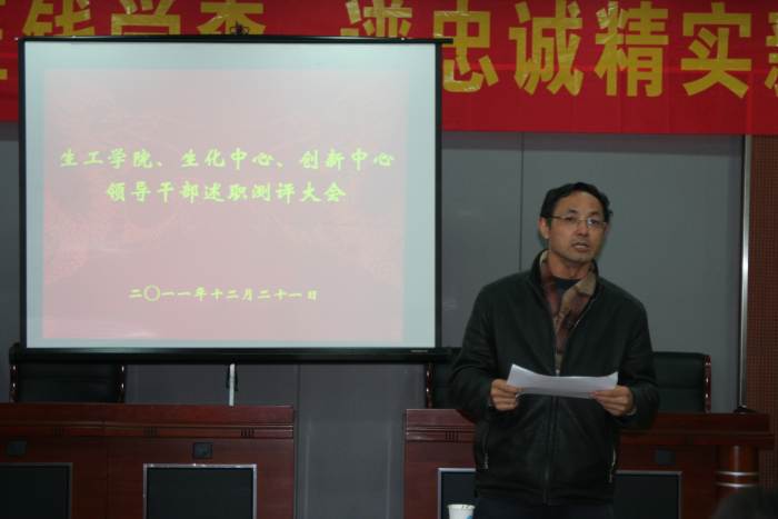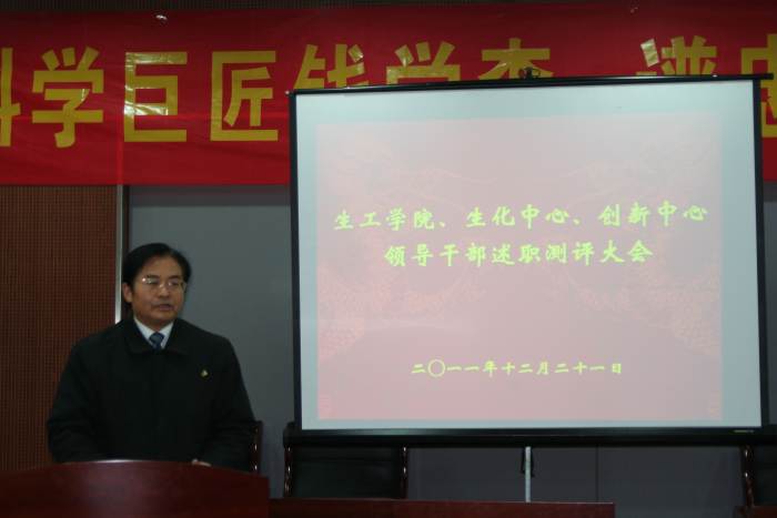 根据公司党委“关于2011年度中层干部考核工作的通知”精神,公司党委于2010年12月21日下午在生工学科楼A1报告厅举行领导干部述职测评大会。公司党委委员、工会主席、教工党支部书记、各系(室)负责人、副高以上教师、副科级以上干部,公司党代会、教代会代表,特邀监察员、民主党派人士参加大会,听取了best365官网、国家生化中心和江苏省工业生物技术创新中心领导干部述职。
