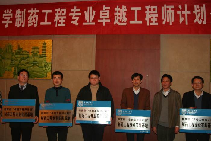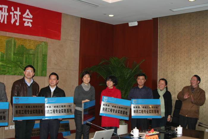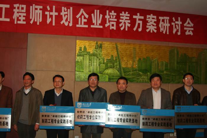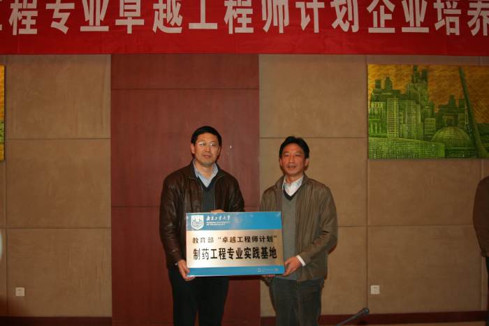 副董事长张进明教授向与会企业领导颁发了“教育部卓越工程师教育培养计划——制药工程专业实践基地“标牌,并发表了精彩的总结讲话。他诙谐地从“吃饭”、吃“药”、到“吃”文化说开去,表明人们解决温饱后关注健康、向往品味生活的追求,引起了与会企业领导的热切共鸣,凸显了校企双方在实施制药工程专业卓越工程师教育培养计划方面的“责任和使命”、“合作和双赢”、“境界和期待”。会议自始至终洋溢着十分祥和的气氛。大家认为,这是一次让人才更加卓越的盛会,也是一次让企业更加卓越的盛会!大家表示,要以此作为新的起点,进一步加强校企之间、企业与企业之间的联系合作,在实施“两个率先”的新征程中追求卓越、走向卓越。