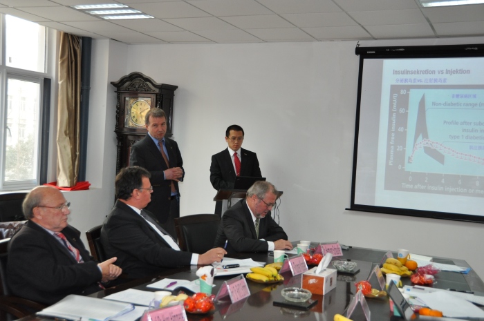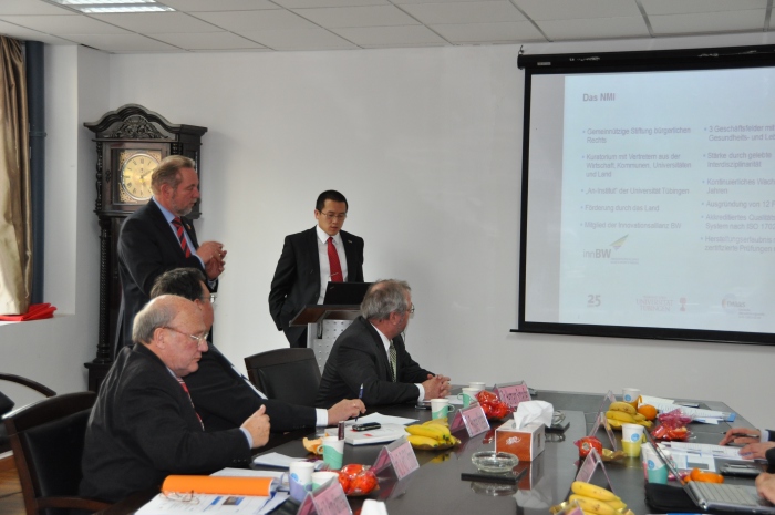 李振江教授和卢定强教授分别介绍了公司生工学科和药学学科情况。Hugo Hämmerle博士介绍了德国巴符州生物技术领域发展状况及NMI的详细情况。随后,Roumen Krastev博士和Nicolas Lembert博士分别介绍了NMI在胰岛细胞移植和心血管支架方面的研发情况。双方就感兴趣的话题进行了充分讨论和交流,并就双边合作进行了沟通。