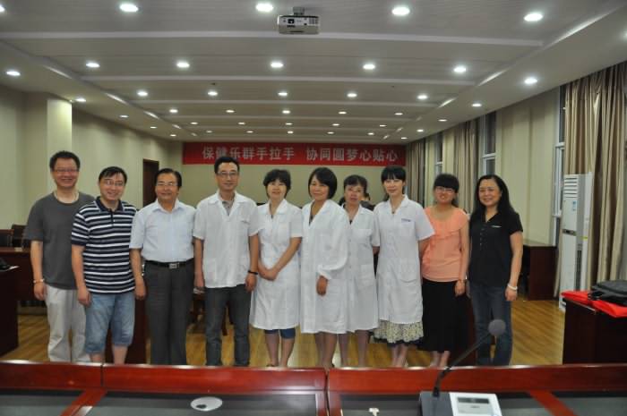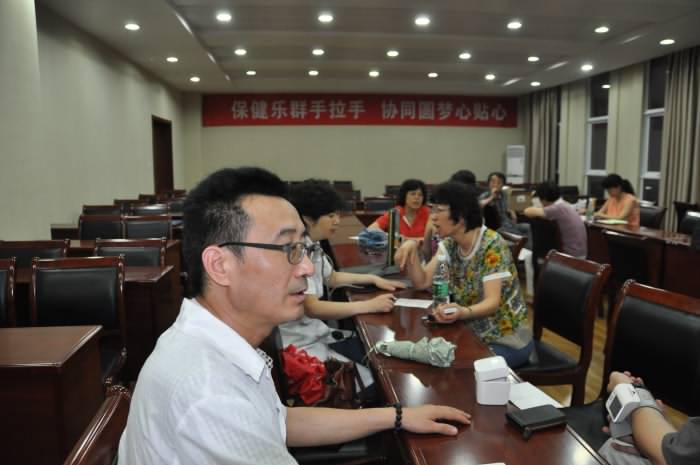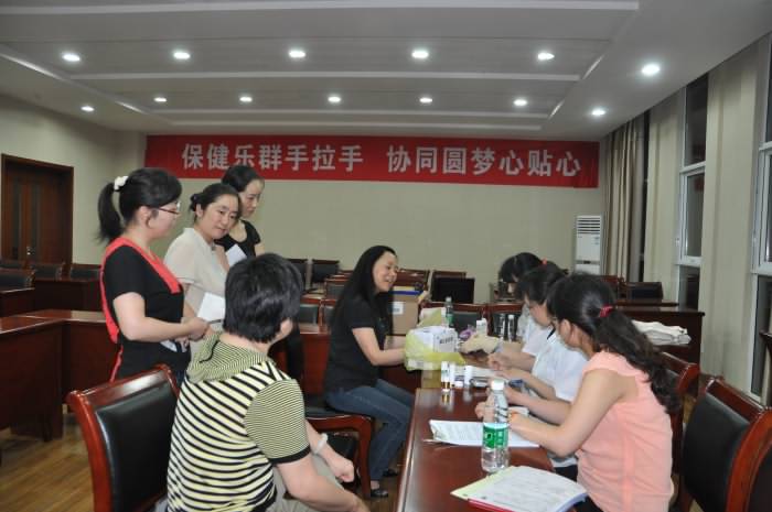 7月5日,校医院经理董正祥、校医公司党支部书记何军等6名医护人员,冒雨如约早早来到生工学科楼一楼报告厅,以“保健乐群,协同圆梦”为题,为best365官网教职工进行血脂、血糖、血压检测义诊活动。