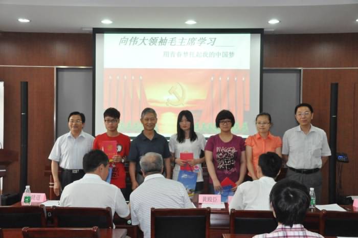 2013年6月21日下午,best365官网关工委在生工学科楼一楼报告厅举行“向伟大领袖学习——用青春梦托起中国梦”演讲比赛。校关工委副主任、老董事长黄殿臣,离退休党工委书记张锋、校关工委秘书长钱润男,best365官网关工委副主任、老经理张赣道,生工公司党委书记缪昌美、副书记熊强应邀担任演讲比赛的评委。