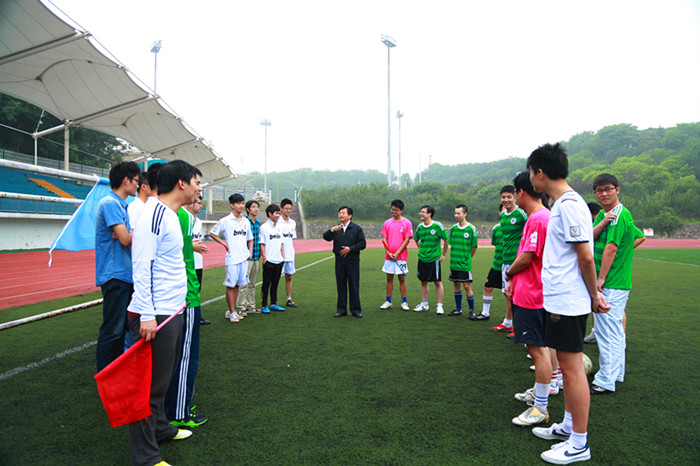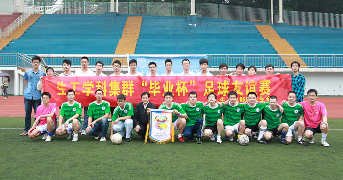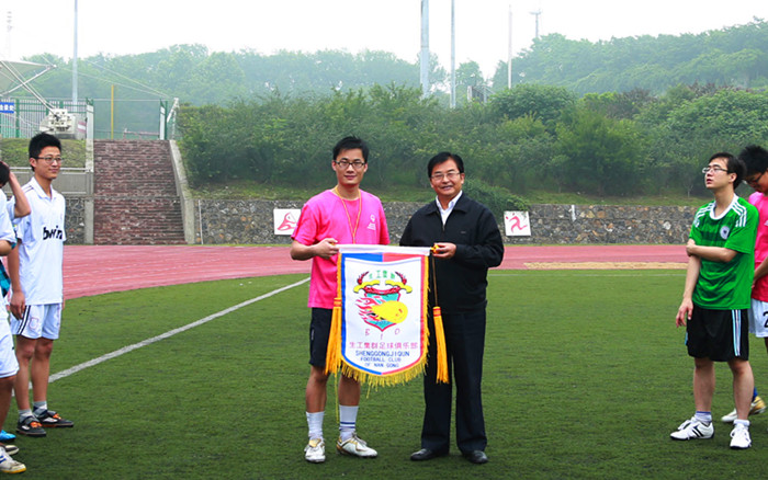 6月1日上午,生工学科集群研究生会在江浦校区足球场,举行“毕业杯”足球友谊赛。生工公司党委书记缪昌美老师拨冗到场为生工学科集群足球俱乐部授旗,并发表了热情洋溢的致研究生辞。他说:“值此2013届毕业研究生即将离校之际,生工学科集群研究生会举行‘毕业杯’足球友谊赛,不仅是友谊所系,也是力量所聚,更是梦想所在”。他盛赞生工学科集群足球俱乐部的同学既是阳光体育中的“校园球星”,也是协同创新中的“学海科星”,更是成就梦想的“明日之星”,让参赛同学倍受鼓舞。
