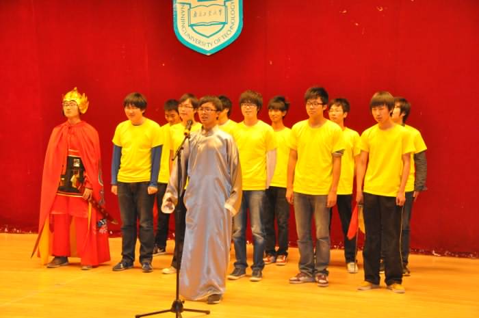 主持人宣布本次朗诵比赛正式开始,各团支部按抽签顺序展示既定的词篇《满江红》。各团支部对本次团支部风采展示大赛表现出了极高的热情,利用课余时间排练。炫丽的舞台上,同学们个个热情饱满、斗志昂扬,展示了每个团支部推陈出新的创造力和团结一致的凝聚力。除了满怀激情的诵读之外,各团支部加以创新,“舞刀弄剑”、“古典舞蹈”、“岳母刺字”等成为本次诗歌朗诵比赛的一大亮点,博得了领导和同学们的阵阵掌声。经过角逐,制药1203班夺得本次团支部风采大赛的冠军。