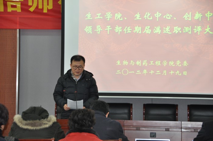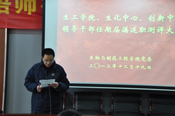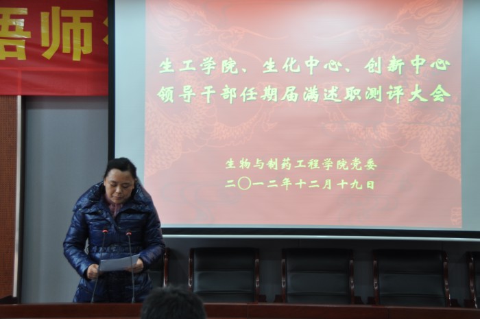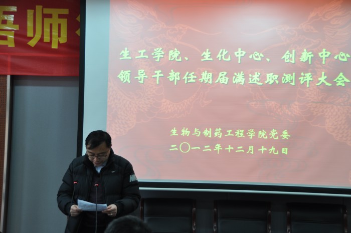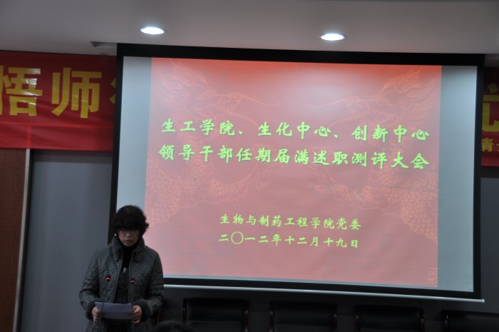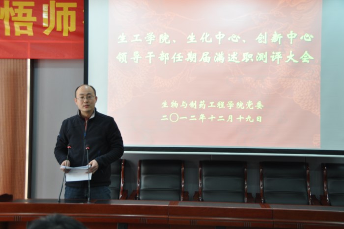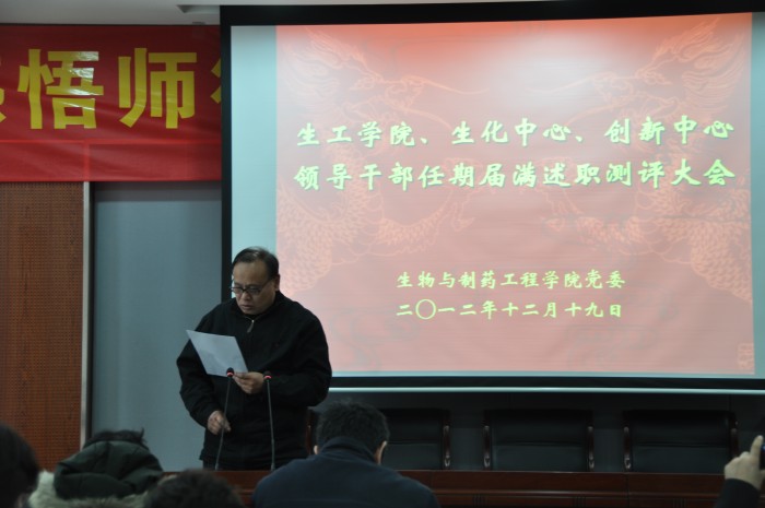 根据公司党委“关于中层干部任期届满考核工作的通知”精神,公司党委于2012年12月19日下午在生工学科楼报告厅举行领导干部任期届满述职述廉测评大会。公司党委委员、工会主席、教工党支部书记、各系(室)负责人、副高以上教师、副科级以上干部,公司党代会、教代会代表,特邀监察员、民主党派人士参加大会,听取了best365官网、国家生化中心和江苏省工业生物技术创新中心领导干部述职。