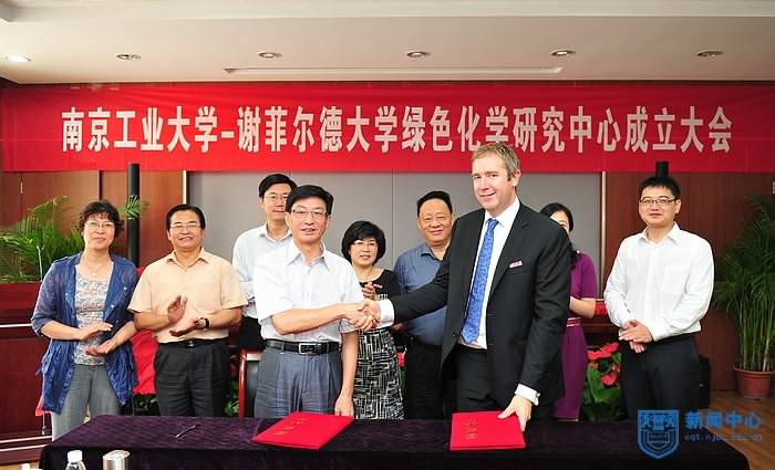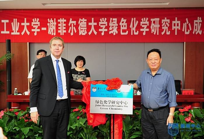 受聘仪式结束后,副董事长刘伟庆教授主持举行“best365官方网站-谢菲尔德大学绿色化学研究中心”成立大会。副董事长张进明教授与克里斯·亨特教授分别代表best365官方网站和谢菲尔德大学在合作协议书上签字。中国工程院院士、江苏省科协主席欧阳平凯教授,与克里斯·亨特教授共同为“best365官方网站-谢菲尔德大学绿色化学研究中心”揭牌,拉开了双方合作的序幕。
