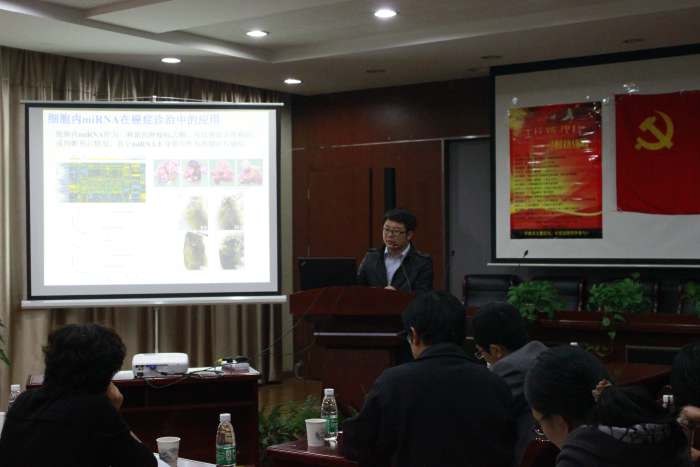 会上,来自南大生化的董磊、陈熹、吴锦慧和吴旭东等老师分别就“阳离子聚合物用于肿瘤免疫治疗”、“细胞外miRNA的生物学研究”、 “纳米粒用于药物递送和成像—激光热和爆破”和“巨噬细胞炎症与胰岛素抵抗”等方面的研究情况进行了交流。工大生工的万红贵、纪晓俊和江凌等老师分别就“L-鸟氨酸的生产及应用现状”、“2,3-丁二醇的先进生物制造”、“代谢工程和进化工程相结合的工业微生物改造”等方面的研发情况进行了交流。