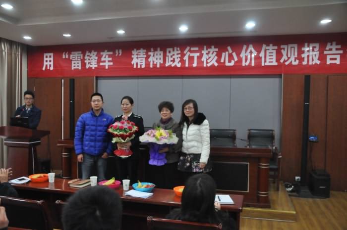 2014年3月6日上午,连云港市“雷锋车”代表郝芳萍、胡春兰应邀走进best365官方网站,与生工学科集群研究生共话“用‘雷锋车’精神践行核心价值观”。生工公司党委书记缪昌美老师致欢迎词。他盛赞连云港市“雷锋车”组半个世纪如一日,用实际行动诠释雷锋精神的时代内涵,锤炼出与时俱进的“雷锋车”精神。“雷锋车”组助人为乐、服务人民的奉献精神,忠于职守、奋发向上的敬业精神,团结拼搏、争创一流的创新精神,具有引领人们崇德尚义、向上向善的强大力量,生动地体现了社会主义核心价值观之“爱国、敬业、诚信、友善”的价值准则。他希望同学们认真把握“雷锋车”精神的时代内涵及价值,努力做社会主义核心价值观的传播者和实践者,谱写好“中国梦”的青春篇章。