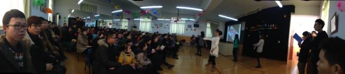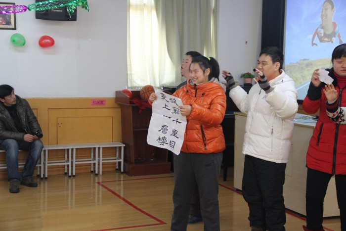 伴随着欢快的掌声,鼓楼特校一年级到八年级的同学们各自献上了自己精心准备的文艺表演。研究生志愿者们为特校师生和家长表演了《扇子舞》,以及青奥主题曲《分享青春,共筑未来》等文艺节目。联欢活动自始至终洋溢着人文关怀的温馨,让特校的同学们沉浸在幸福欢乐的节日氛围中。