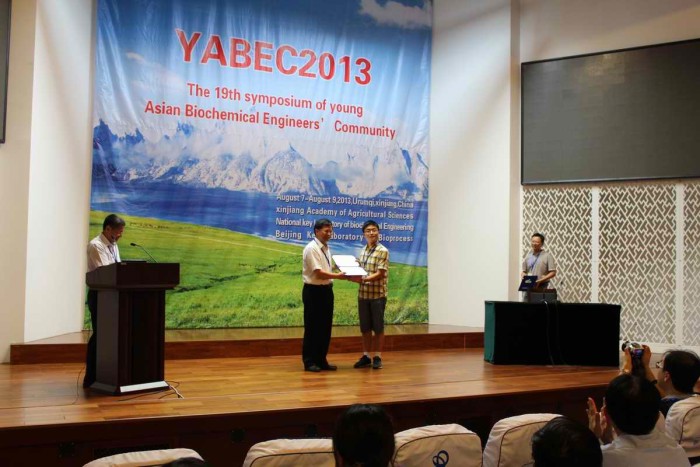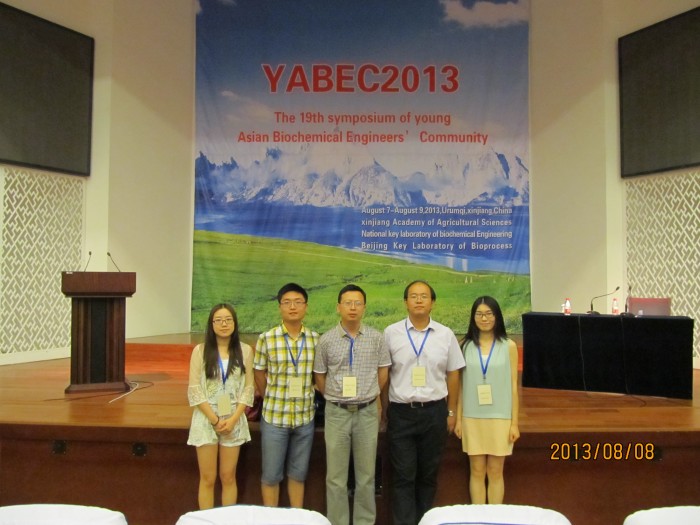 “第十九届亚洲青年生物工程师研讨会(The 19th Symposium of Young Asian Biochemical Engineers’Community)”(简称YABEC),于2013年8月7日至8月9日,在新疆乌鲁木齐市举行。来自中国大陆、中国台湾、日本、韩国的140多名相关专家学者参加。公司冯小海、吴昊老师以及应汉杰教授课题组的研究生孟洁、丁静静、季雯燕应邀参加了会议。本届研讨会的议题为“资源、能源危机背景下的生物化工发展”,由亚洲青年生化工程师组委会主办、新疆农业科公司微生物应用研究所协办。会议主要研讨的内容涵盖了生化工程领域的前沿研究方向,包括:微生物技术,生物催化和生物传感器,生物材料、细胞和组织工程,生物质,生物能源和环境工程,生化分离、工业微生物等。