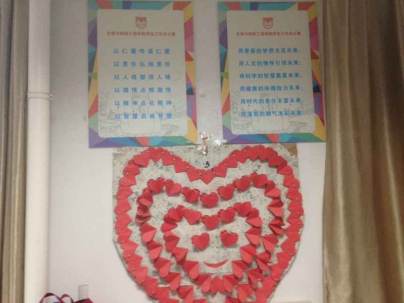 在楼道文化建设中,best365官网关工委会同青教协、研究生会,将大家认同的文化精神的宣示与生工学科楼楼层的标识有机地融为一体,形成了一道彰显精神坐标的风景线。让青年教师进出生工学科楼每一楼层时,既能明了楼层的位置,又能从知行合一的高度强化“以仁爱传递仁爱,以责任弘扬责任,以人格塑造人格,以激情点燃激情,以精神点化精神,以智慧启迪智慧”的文化熏陶。让青年员工进出生工学科楼每一楼层时,既能明了楼层的位置,又能从全面发展的高度强化“用青春的梦想点亮未来,用人文的情怀引领未来,用科学的智慧奠基未来,用健康的体魄给力未来,用时代的责任奉献未来,用蓬勃的朝气添彩未来”的价值追求。