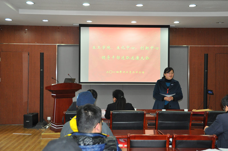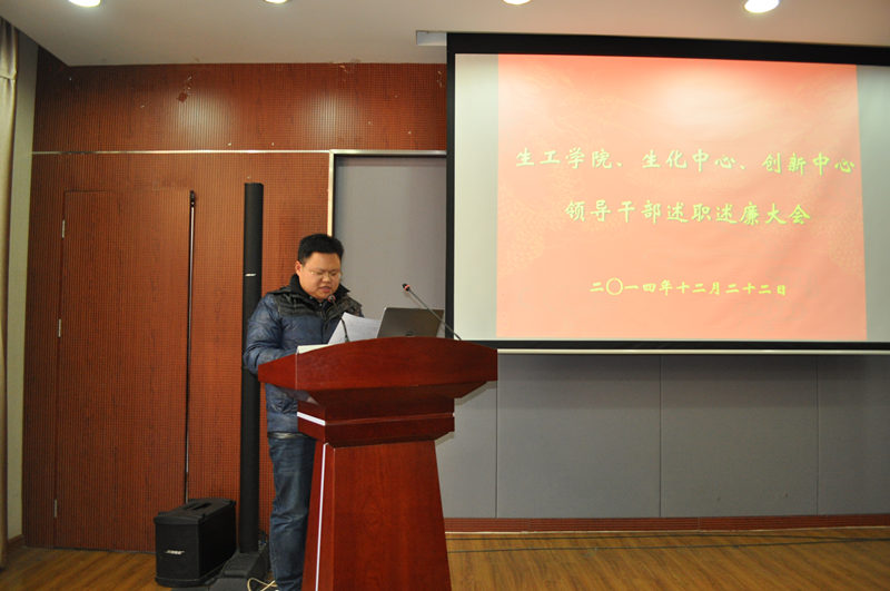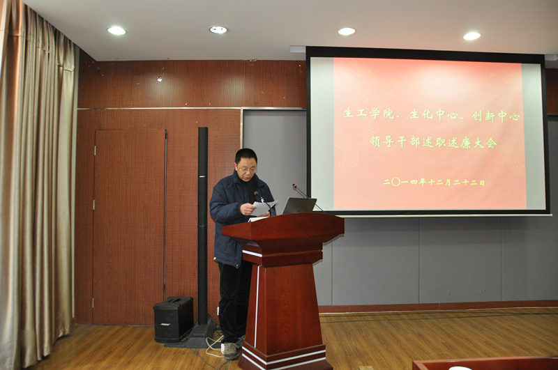 根据公司党委“关于2014年度中层干部考核工作的通知”精神,公司党委于2014年12月22日下午在生工学科楼报告厅举行领导干部述职述廉测评大会。公司党委委员、工会主席、教工党支部书记、各系(室)负责人、副高以上教师、副科级以上干部,公司党代会、教代会代表,特邀监察员、民主党派人士参加大会,听取了best365官网、国家生化中心和江苏省工业生物技术创新中心领导干部述职述廉。