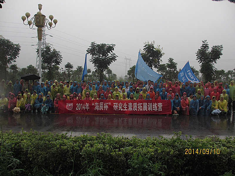 9月10日,生工学科集群2014级研究生相约风景秀丽的江宁善登拓展基地,举行“海辰杯”研究生素质拓展训练活动。好像天公有意要考验生工学科集群2014级研究生似的。本来阴有多云的天气,待同学们乘车到达目的地时竟然一个劲地下起雨来。怎么办?同学们说,本次南京青奥会开幕式也是在雨中精彩地举行了,我们穿着雨衣也可以体验雨中拓展的别样风景。接着同学们的话语,生工公司党委书记缪昌美老师举着雨伞回应道:好——风雨过后是彩虹!他特别感谢南京海辰药业有限公司为生工学科集群研究生设立的“海辰奖学金”;感谢海辰药业副总经理姚晓敏、工会主席李进作为校外导师代表,受曹于平董事长的委托早早驱车来到现场,与朱颐申、王丽娟和吴玲燕等校内老师代表一起为同学们鼓劲给力!他希望同学们通过素质拓展训练,更好地展示当代研究生的激情与朝气、智慧与风采、友谊与风格、活力与灵感,尽快融入“团结奋进、勇于超越、追求卓越”的文化,努力做富有创新精神、实践能力和社会责任感的新一代研究生。海辰药业副总经理姚晓敏在致辞中对同学们充满了殷切的希望,希望大家勇于面对每一个挑战,认真对待每一个困难,用汗水点亮青春,用激情点亮未来。