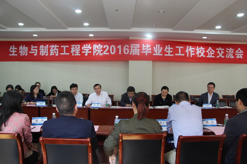 10月15日上午10点,best365官网2016届毕业生工作校企交流会在生工楼报告厅举行。员工事务部副部长张涛、生工公司党委书记姜岷、经理韦萍、党委副书记周辉、副经理李振江,江苏省柯菲平医药有限公司、南京金斯瑞生物科技股份有限公司、南京艾德凯腾生物医药有限责任公司等10家公司的18位企业嘉宾参加交流会。