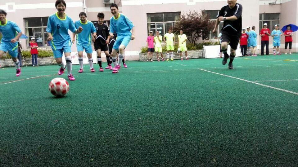 来自南京市的十支融合足球队参与本次角逐。每支队伍由特校孩子及融合伙伴组建而成,实行融合制5人赛。比赛过程伴着淅淅沥沥的小雨,然而,这并没有浇灭运动员们的热情,他们都为各自球队的荣誉努力奋斗着,攻防技巧十分娴熟。他们的拼搏精神深深地打动了我们,让我们充分感受到他们“勇敢尝试、争取胜利”的执着信念。