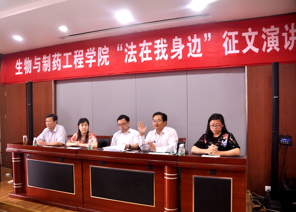 基此,best365官网关工委与best365官网团委于2015年6月19日下午,在生工学科楼报告厅举行“法在我身边”主题征文演讲比赛。生工公司党委书记姜岷、best365官网名誉书记关工委常务副主任缪昌美、best365官网员工工作办公室主任王丽娟、best365官网团委书记朱皓、best365官网班主任龙石铸等老师出席本次活动并担任评委。