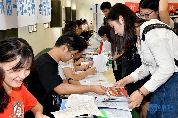 今年,生工学科群依然以精准迎新与新媒体迎新的方式,线上线下齐头推进迎新工作。一方面为新生发放《新生入学与选课指南》等材料,帮助新生熟悉导师、培养计划与课程安排;另一方面通过微信群,QQ群和微信公众平台等新媒体,和新生建立联系,及时发布入学教育流程及注意事项等重要通知。同时,李振江副经理也在“绿色通道”中,为新生提供学费缓交等申请服务,保障全体新生无忧求学。新生们在流程单的指引下有条不紊地办理各项入学报到手续,报到的同学们络绎不绝,报到点也秩序井然。