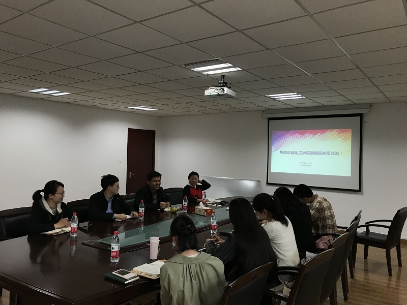 4月25日下午2:30,化工公司到公司调研员工工作。化工公司党委副书记弋鹏、生物与制药工程公司党委副书记周辉和双方公司的学办、分团委全体老师参加活动。