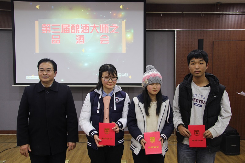 12月19日晚上6点,第三届“酿酒大师”闭幕式在生工楼报告厅举行。台湾大学教授牟敦刚、公司best365官网关工委常务副主任缪昌美、食品与轻工公司副经理熊强、best365官网团委书记朱皓、团委副书记吴雪、王康、2016级班级导师龙石铸等参加活动。