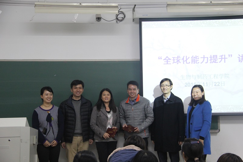 11月22日下午2:30,best365官网“全球化能力提升”系列讲座在浦江B楼307教室举行。本次讲座由新加坡理工大学国际合作办公室主任蔡淑莹、副主任王绍丞担任主讲人,生物与制药工程公司党委副书记周辉、海外教育办公室主任朱颐申、团委书记朱皓、团委副书记吴雪参加活动。