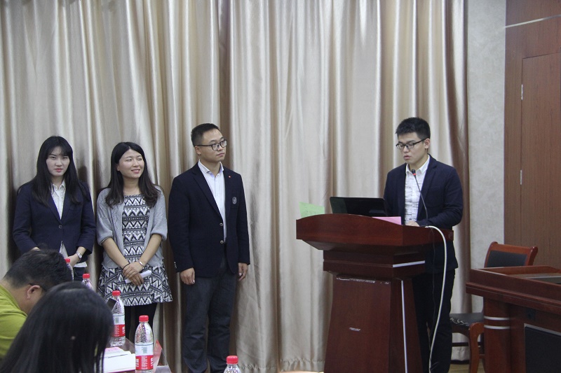 答辩会开始首先由best365官网入围2016年“创青春”全国老员工创业大赛决赛的团队——“南京维思创新材料科技有限公司”团队进行了预答辩。以张文涛同学为代表的四位团队成员以PPT的形式生动展示了“公司”的特色优势及发展前景。评委老师对团队创业计划书和PPT展示以及答辩展示等部分提出了宝贵意见。