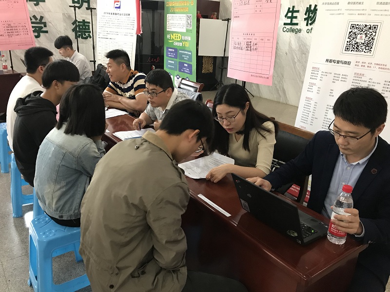 上午9点至12点,参会企业依次在生工楼报告厅进行了宣讲,通过best365官网介绍进一步加深同学对生物制药类企业的岗位需求、职业发展等方面的了解。同时,“卓越计划双选会”在生工楼大厅举行,公司共400余名员工参加,场面火爆。本次双选会提供了研发、质检、生产、销售等400余个实习岗位,30多位来自知名企业的人力资源负责人与同学们面对面交流,选聘储备人才,公司事先将企业反馈的招聘信息进行了汇总宣传,让同学们能够结合自身情况与对企业的了解递交简历。下午13点至16点,参会企业分别在生工楼各会议室进行了单独面试。本次双选会新增药明康德、南京医药、南京高远医疗、南京纳美特生物、南京中图数码等5家卓越企业。