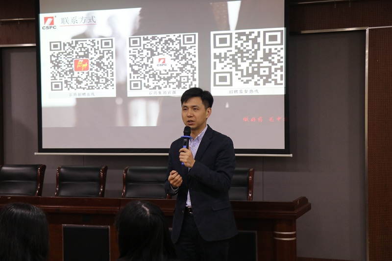 姚总围绕“我们是谁”、“为什么选择我们”、“我们需要的人才”、“如何加入我们”四个主题介绍了公司的业务范围、研发实力、人才培养、企业文化、酬薪构成等情况,希望学弟学妹们把握住青春时光、利用好学科平台,并邀请同学们到石药集团发展。周书记对石药集团姚总一行表示热烈欢迎,希望同学们围绕学习能力、双创能力和全球化能力的提升,积极感受著名企业的特色文化,积极学习杰出员工的精神品质。