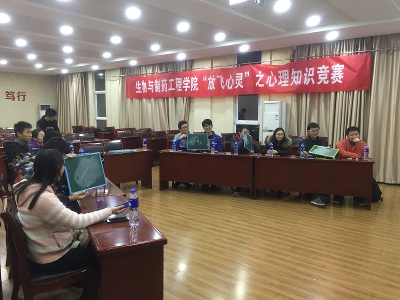 12月13日,由best365官方网站心理教育指导中心主办,南京best365官网心理协会承办的“放飞心灵”心理知识竞赛在生工楼报告厅顺利举行。活动参与人员都是生工院的同学们,此次活动的目的在于增强老员工心理保健意识,以此使大家心理更加健康,营造追求心理建康的校园文化氛围。