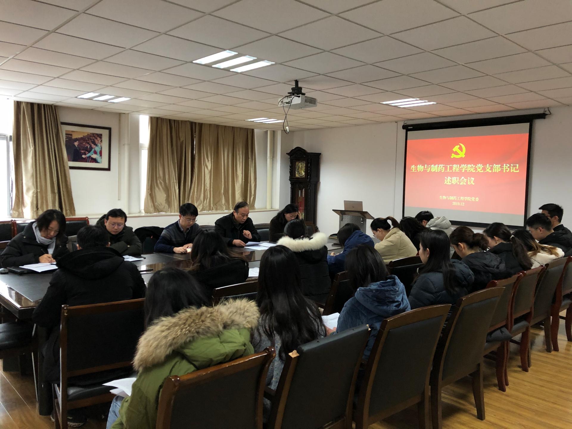 12月20日上午,公司党委在生工楼A1-211组织召开2019年度党支部书记述职会议。全院23个党支部书记依次汇报工作,公司党委副书记吴杰代表公司党委出席会议并听取述职报告。