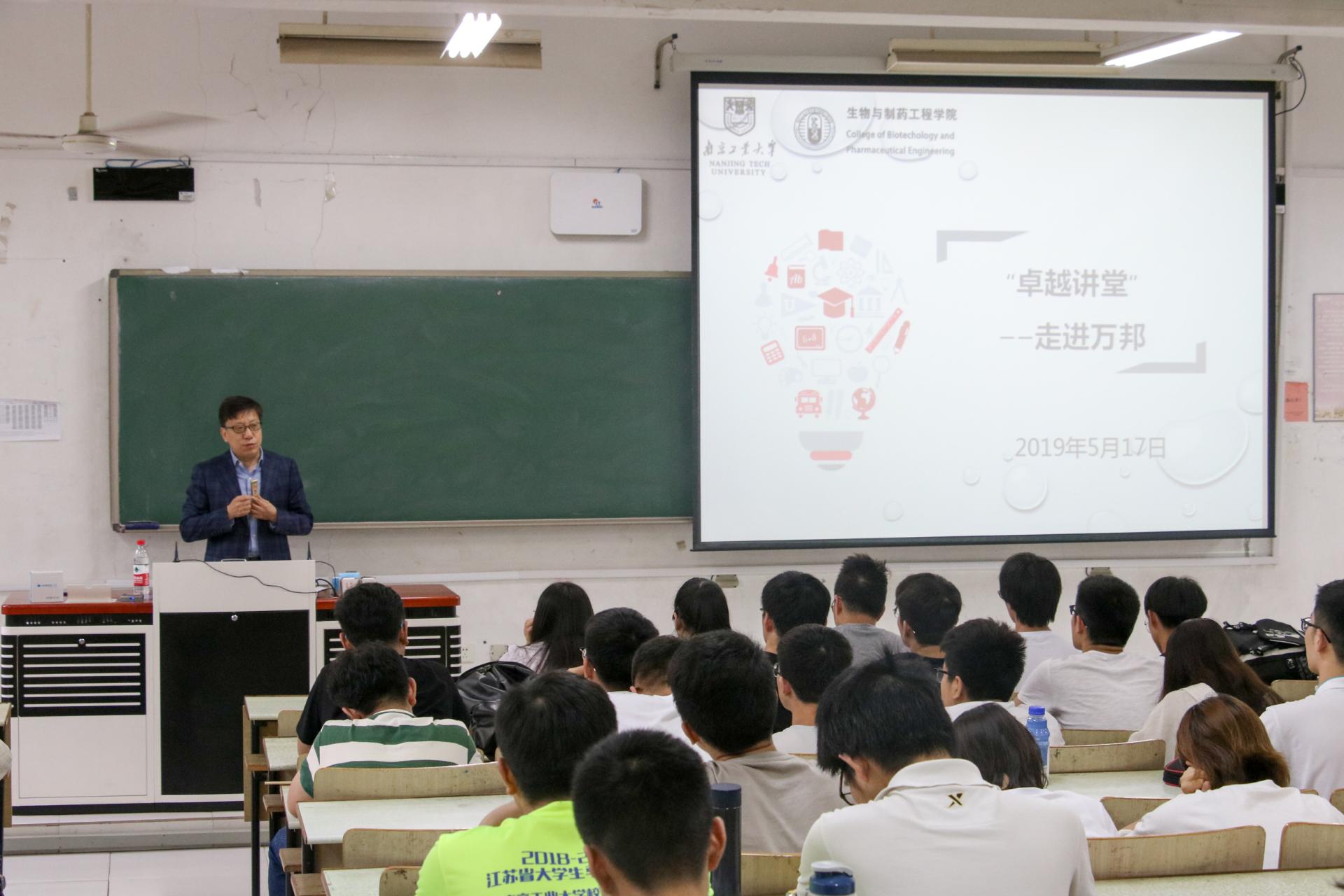 5月17日下午16:00,best365官网“卓越讲堂”企业讲座在仁智315教室举行。讲座特邀江苏万邦生化医药股份有限公司 副董事长、CEO吴世斌担任主讲人。best365官网员工事务办公室主任朱皓主持活动。