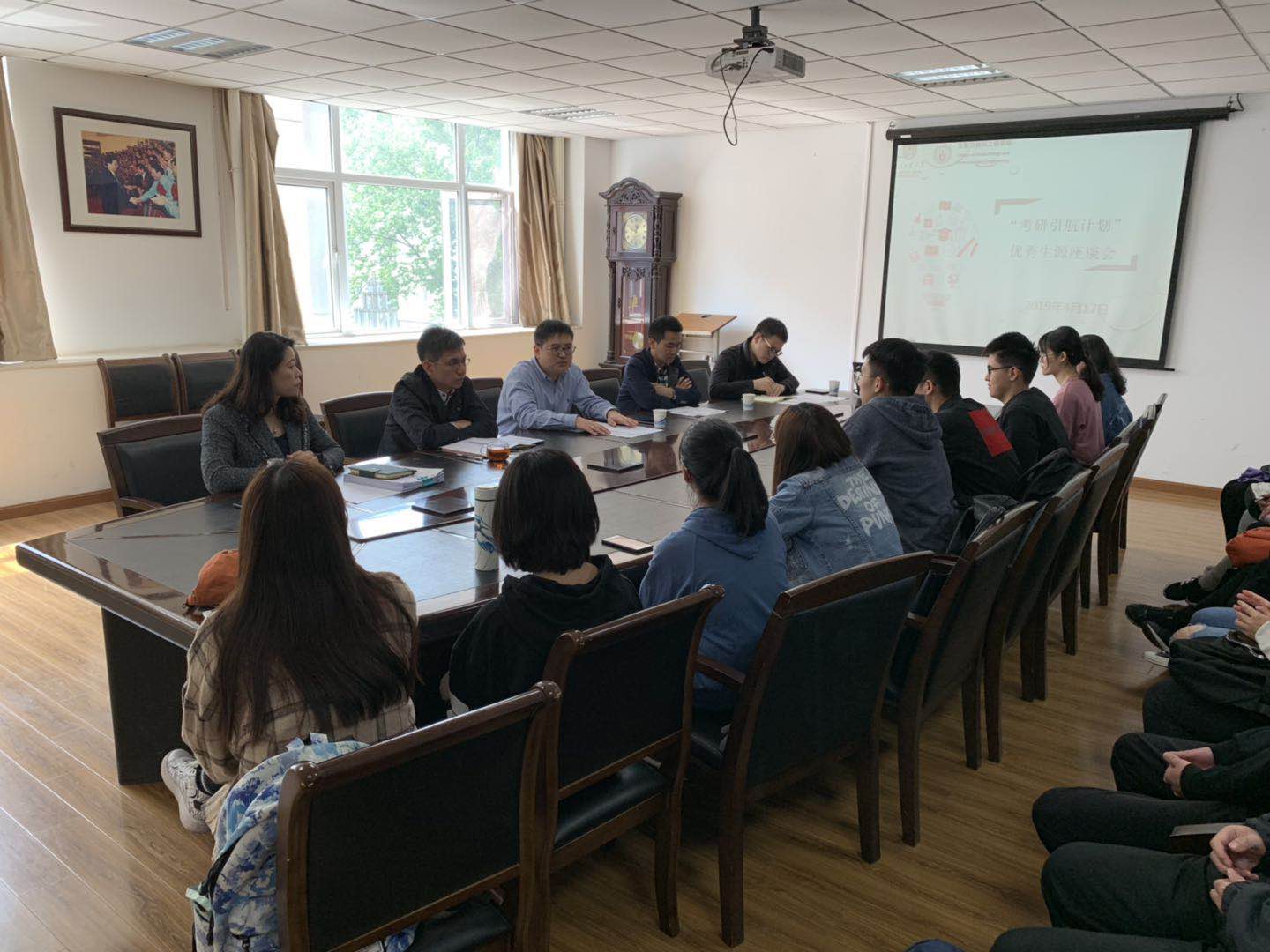 2019年4月17日上午,best365官网“考研引航计划”优秀生源座谈会在生工楼207会议室举行,经理郭凯、党委副书记周辉、副经理贾红华、团委副书记王康、2016级优秀员工代表等参会,学办主任朱皓主持会议。