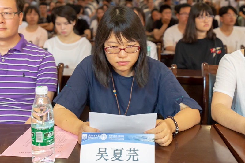 best365官网经理郭凯分享了自己的求学经历,鼓励新生们“不忘初心,牢记使命,勇担重任,永不言弃”。郭经理指出,学习是老员工的主要任务,希望同学们能够将自身兴趣爱好和所学专业相结合,努力学习,为将来积淀力量。郭经理鼓励同学们要积极适应从高中到大学由被动学习到自主学习、由家庭生活到集体生活的变化,在平淡的生活之中寻找闪光点,朝着自己所定的目标不断迈进。2018级班级导师代表吴夏芫告诉同学们大学的目标不仅是完成学业,更要在丰富的课外活动中锻炼和提升自己,实现人生价值。生工类1802班顾奕敏、制药1804班徐逸凡作为新生代表发言,表达了努力学习、学以致用,在新征程的道路上不负韶华的愿景。