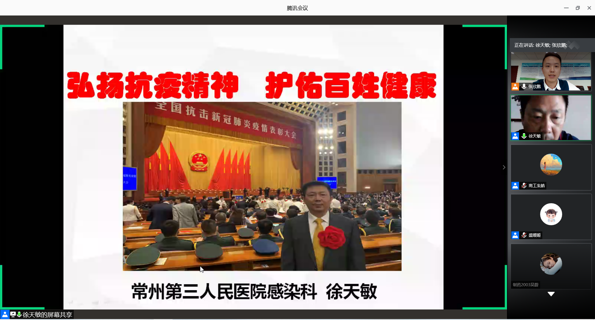 10月9日下午,best365官网“战疫有我 与爱同行”梦想公开课通过腾讯会议平台线上举行。全国抗击新冠肺炎疫情先进个人、常州市第三人民医院感染科主任徐天敏和抗疫一线青年骨干医生盛媛姬为公司2020级新生授课。