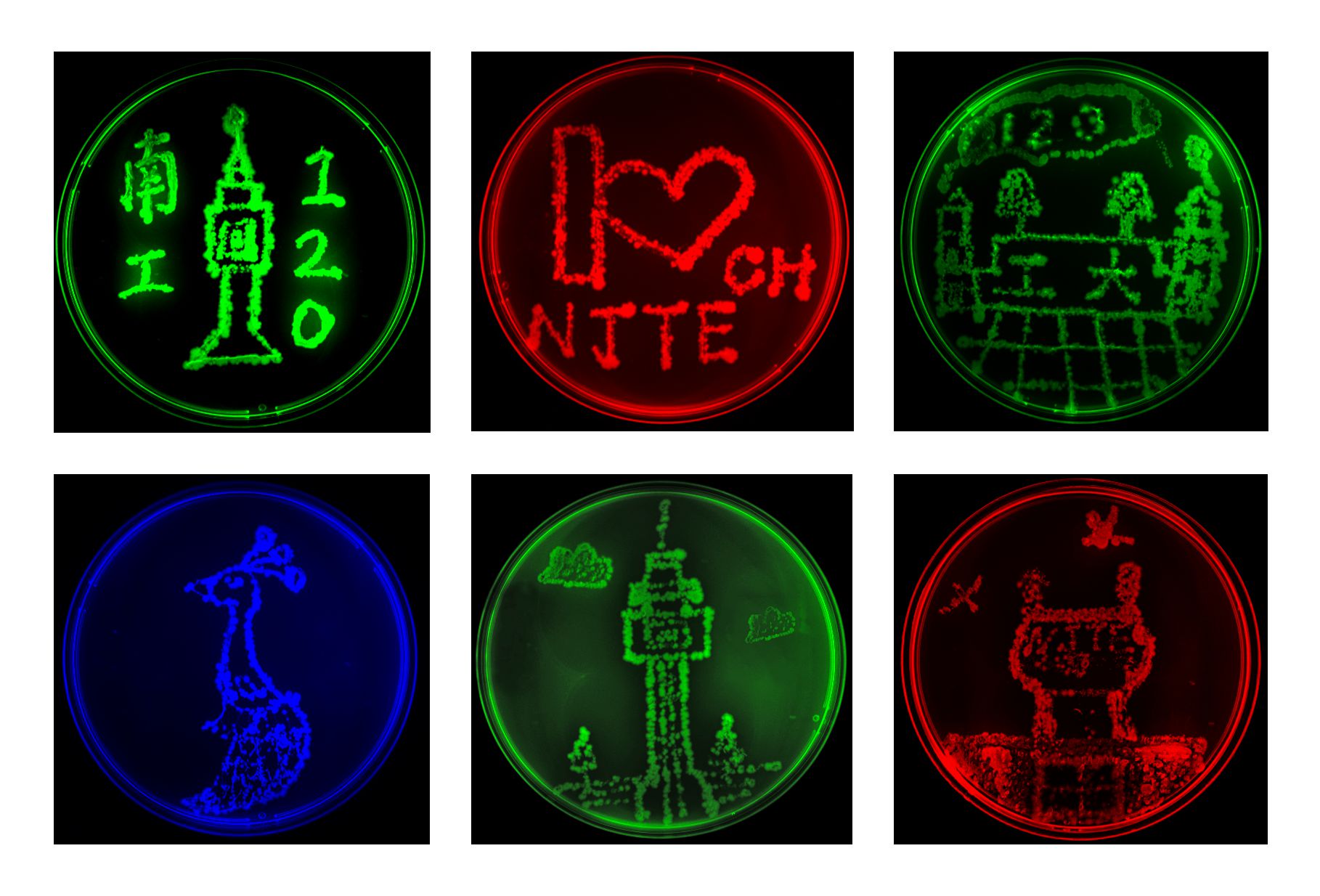 为进一步落实立德树人根本任务,best365官网合成生物工程团队教师在生物工程类1905班的微生物学实验课教学过程中,指导本科生利用微生物细胞作为“笔墨”, 以120周年校庆为主题,创作了一幅幅丰富多彩的微生物绘画作品。同学在学习到专业课程知识的同时,利用微生物绘画描绘南工大,弘扬正能量,展现出南工大青年老员工新风采。