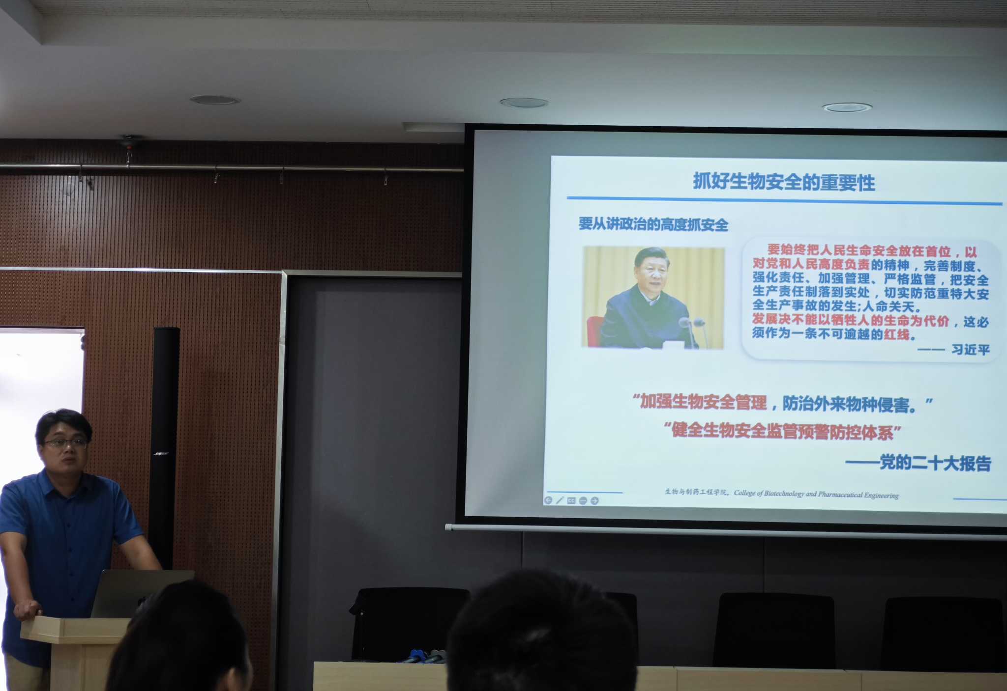 为落实党的二十大报告中关于“加强生物安全管理、防治外来物种入侵”以及“健全生物安全监管预警防控体系”的要求,6月1日下午,best365官网结合公司实际情况,在尚德楼A1报告厅举行了实验室生物安全教育专题培训会议,公司副经理庄伟教授做《实验室生物安全管理水平提升》专题报告,公司各实验室负责人、安全责任人及研究生代表共90余人参加了培训。