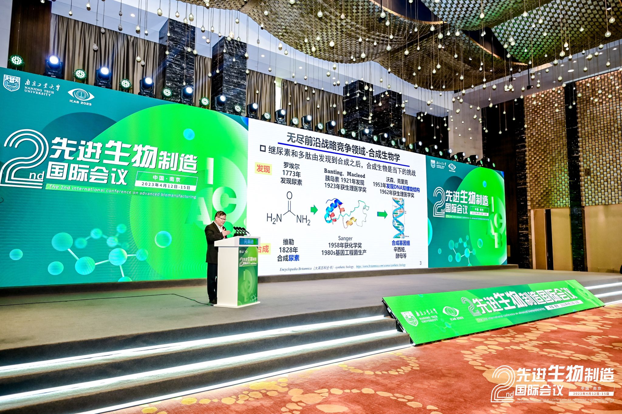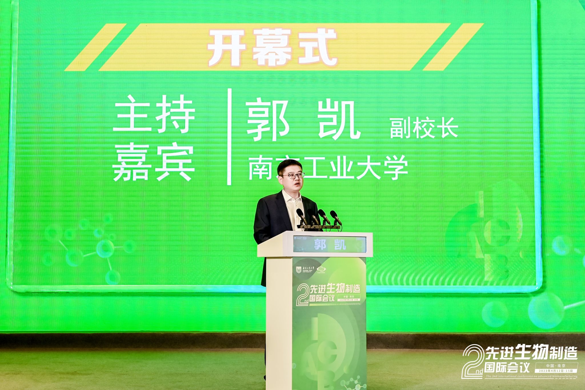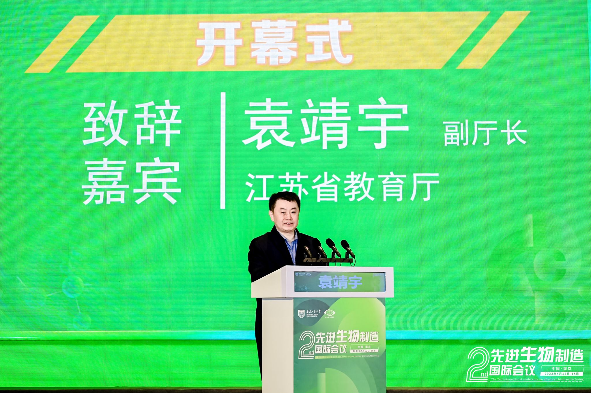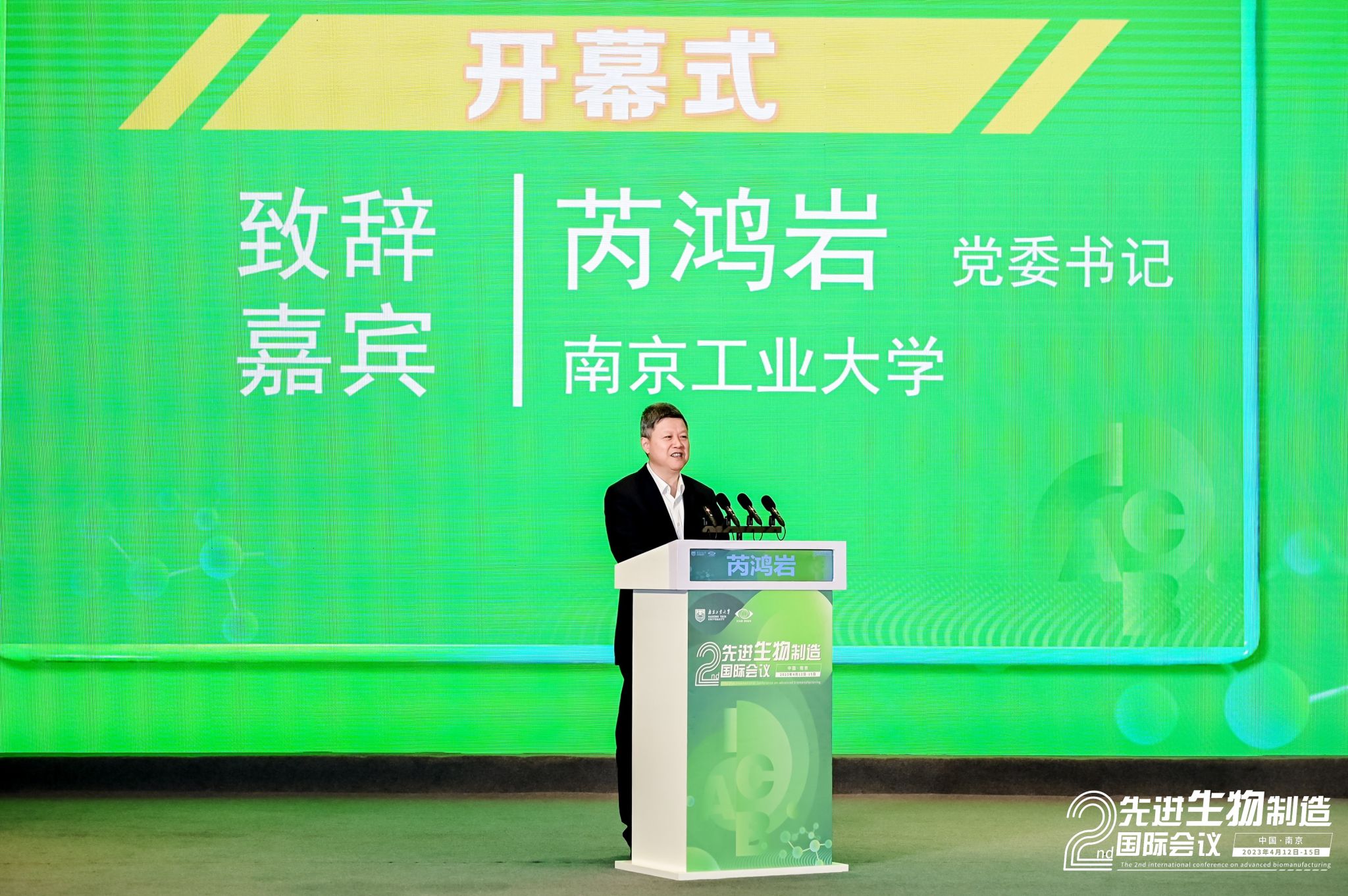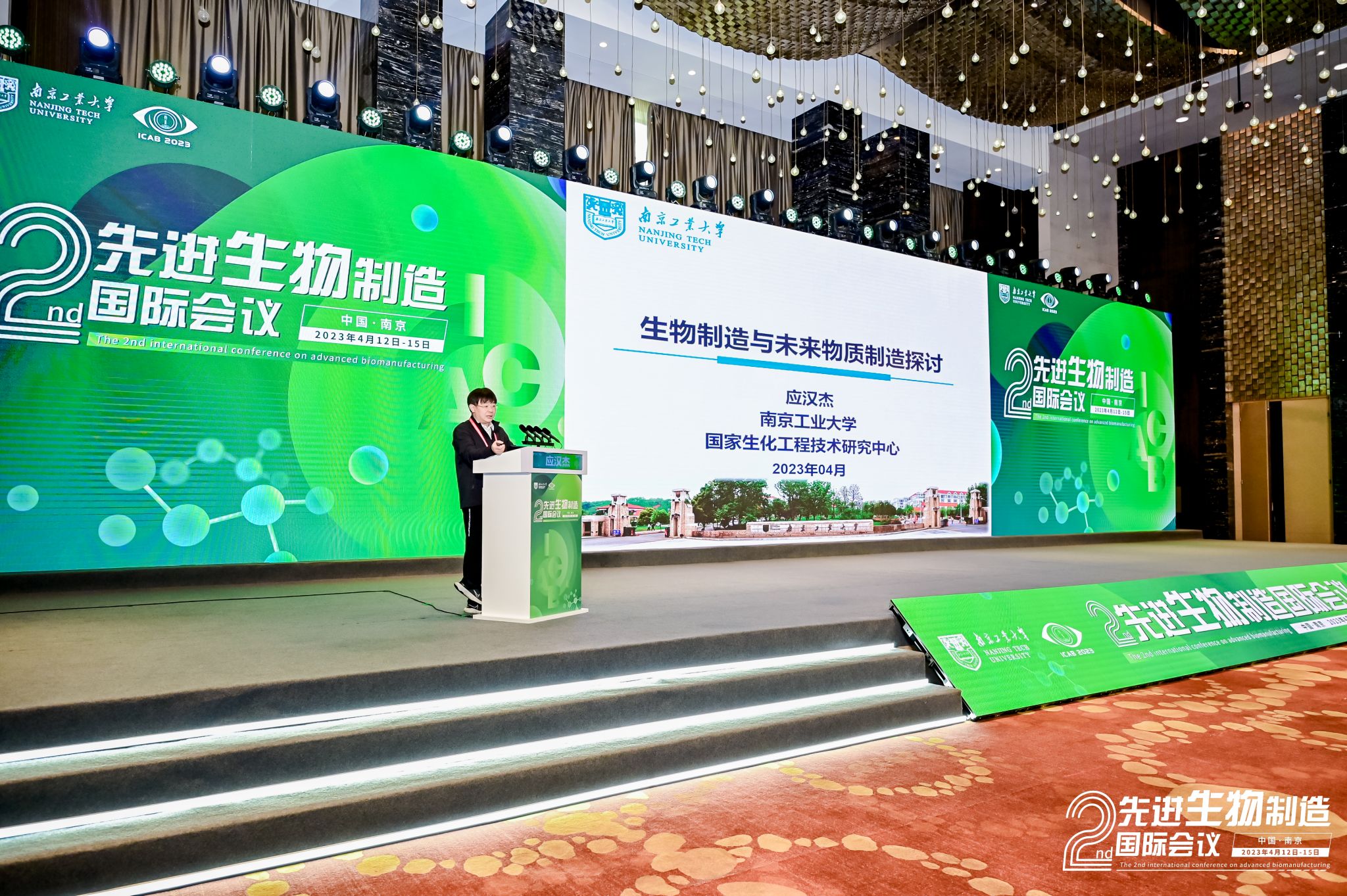 4月12日-15日,由best365官方网站主办的第二届先进生物制造国际会议(ICAB 2023)在南京隆重召开,来自9个国家和地区的58个高校及科研院所的500多名专家学者和员工代表参会。本次会议由南京工业老员工工学科群、国家生化工程技术研究中心、学术期刊编辑部联合承办,由中国化工学会生物化工专业委员会、中国生物工程学会工业与环境专业委员会、江苏省生物技术协会等学术组织以及南京轩凯生物科技股份有限公司、南京先进生物材料与过程装备研究院有限公司、南京汇科生物工程设备有限公司等企业协办。中国工程院化工、冶金与材料工程学部主任、北京化工大学董事长谭天伟院士,江苏省教育厅副厅长袁靖宇,best365官方网站党委书记芮鸿岩出席大会开幕式并致辞。开幕式及大会报告分别由公司副董事长郭凯教授和南京师范大学副董事长黄和教授主持。