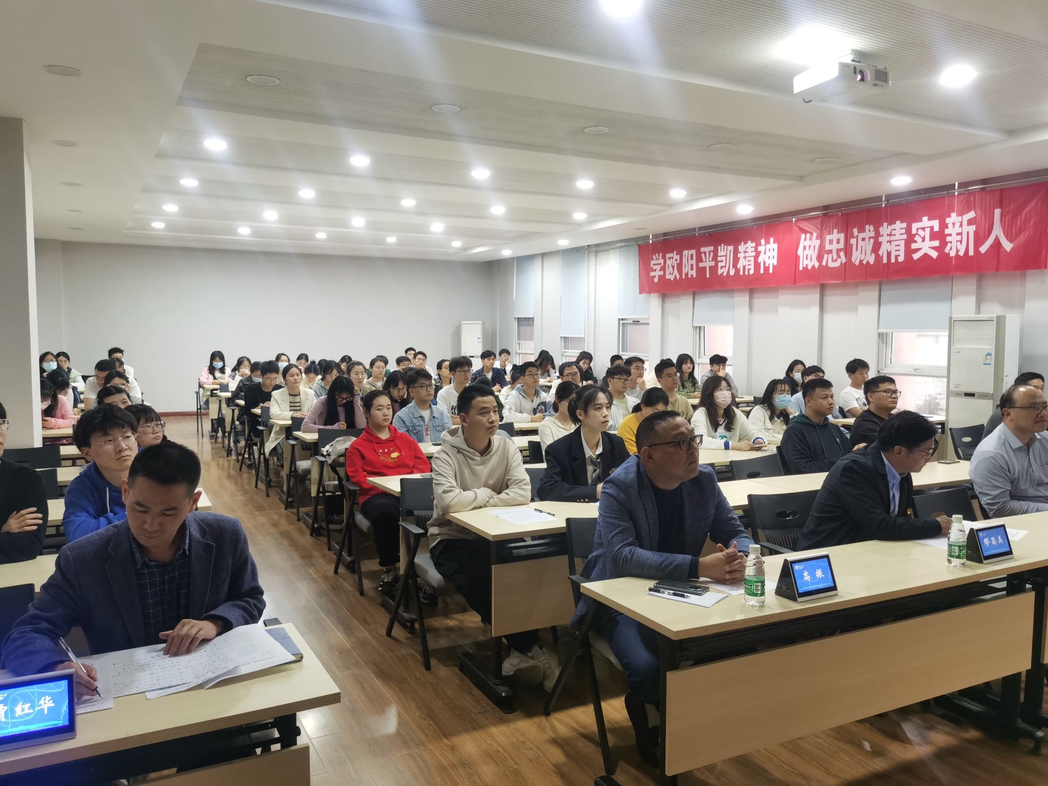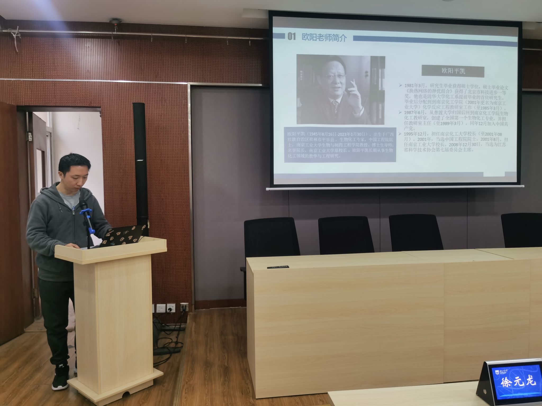 首先,徐书记简要介绍了欧阳院士生平,以及欧阳院士对公司、学科及公司发展的重大贡献和深远影响,并表达了深切缅怀。大家通过欧阳院士专题纪念视频,回顾了他在科学研究、服务产业、团队建设、教书育人以及办学治校等领域做出的卓越贡献。欧阳院士生前指导的员工代表回顾了老先生对他们的悉心教导和呵护,让大家感受到了一代宗师的崇高风范。公司原党委书记、原经理韦萍老师,公司副经理贾红华老师深情追思了与欧阳院士的共事岁月,将他在工作与生活中的点点滴滴娓娓道来,使他的形象在同学们心目中变得更为生动立体,让同学们更深刻地领略了欧阳平凯精神的本质和内核。
