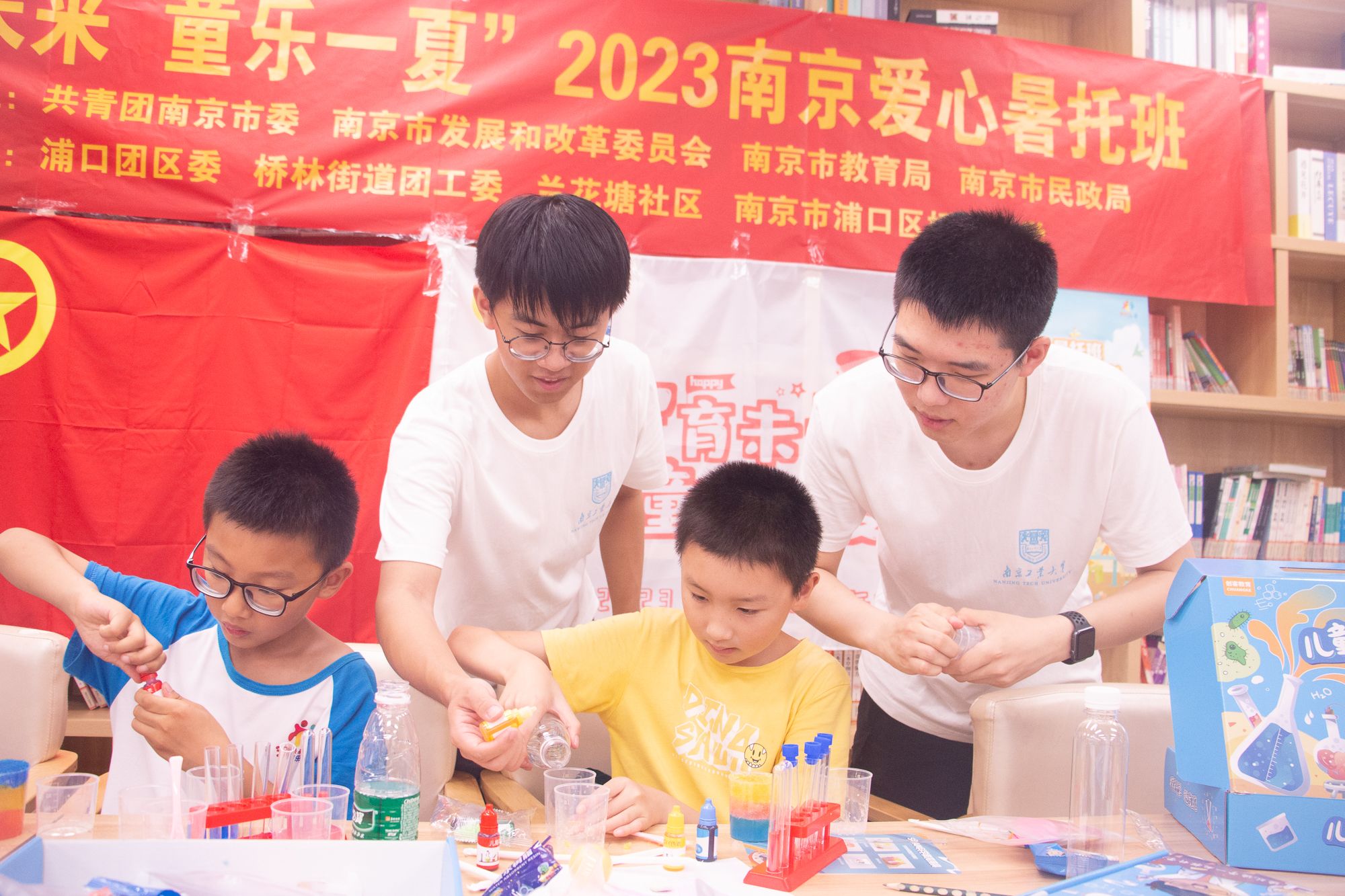 童心所“暑”育才团由best365官网团委选拔公司10名优秀在校生组建而成,自7月10日起分为两支队伍前往浦口区桥林街道和永宁街道参加开班仪式并正式入驻社区,重点面向街道6-14周岁“暑期看护难”的困境青少年、农村留守儿童等人群,提供为期一个多月的暑期看护志愿服务。团队成员精心设计了包含价值引领、心理疏导、生活指导、课业辅导等服务项目,同时团队成员结合best365官方网站学科背景及专业特色,为孩子们带去“小小科学家”科普实验课程,用科学家精神滋养孩子们成长。爱心暑托班进展初期,团队成员细致入微的看护和倾心设计的精品科学课程,受到家长和小朋友们的一致好评,对后续志愿服务充满期待。