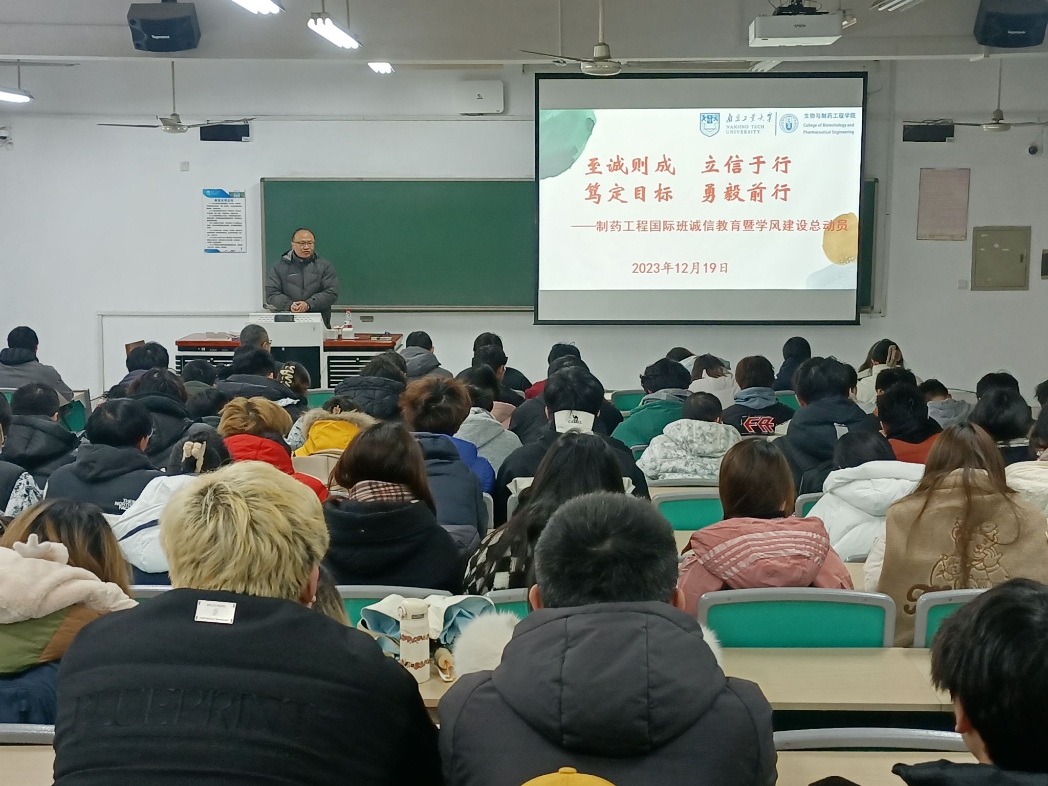 为进一步提升公司制药工程国际班培养质量,加强学风建设,12月19日上午,公司在仁智楼201教室面向全院国际班员工召开学风建设动员暨诚信教育专题会议,公司党委副书记徐元龙、分管国际合作与交流盛晟副经理以及学办相关辅导员老师参加会议。