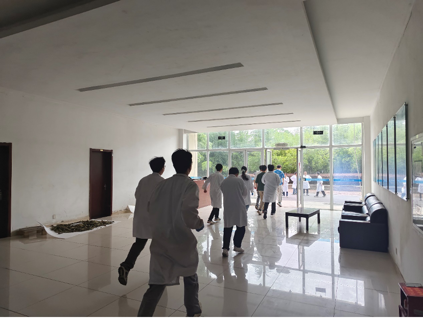 上午9:50火灾警报声准时响起,低碳中心师生员工迅速反应,并按照预定的疏散路线,通过消防通道紧急撤离至楼下应急避难区域。随后在低碳中心212实验室进行实验室事故演练,由操作人员模拟在实验过程中,有机溶剂突发火情以及腐蚀性试剂飞溅至操作人员手部等情景下启动应急预案,对火情现场及受伤人员进行应急处置。