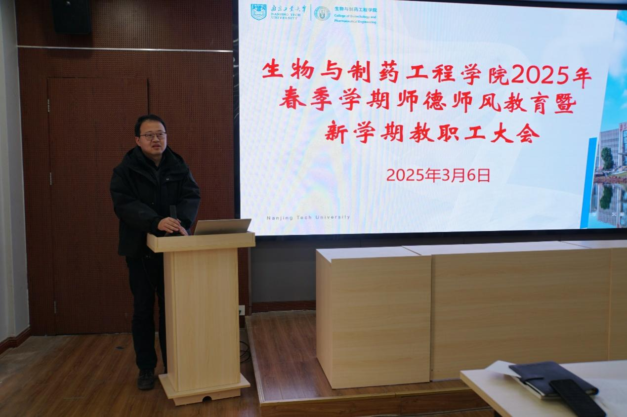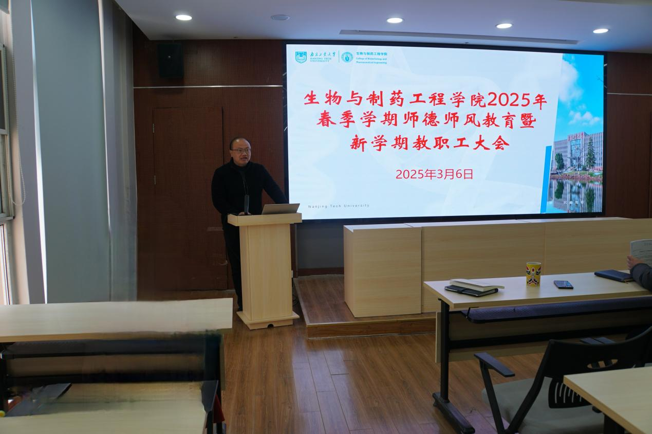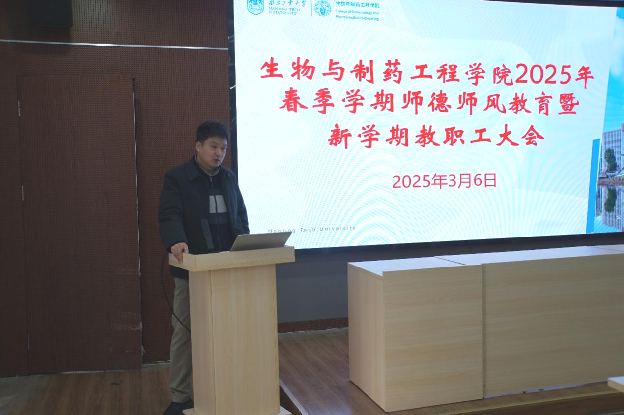 陈可泉经理对公司过去一年的工作进行了全面梳理与总结。他指出,当前生物制造行业已进入发展黄金期,希望全体教职工进一步增强责任感、使命感和紧迫感,抢抓机遇、齐心协力引进高层次人才、培养高素质英才、承担高水平项目、产出高质量成果、开展高效能合作,为公司生物工程学科评估以及公司双一流创建打下坚实基础。