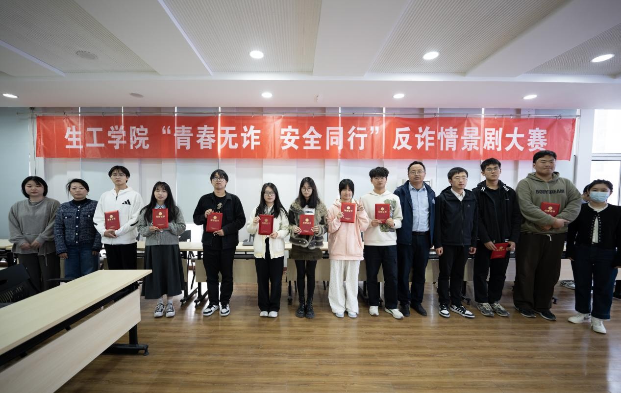 经过一个月的精心筹备,反复打磨,参赛队伍围绕熟人诈骗、裸聊诈骗、游戏诈骗等主题,运用夸张换装、实时投影等戏剧化表现形式增强沉浸感,通过生动的表演和幽默的语言,细腻刻画了受骗者的心理变化,展现了诈骗的全过程及其严重后果。情景剧结尾全体演员手举反诈标语谢幕,让同学们在轻松的氛围中深刻认识到诈骗的危害,寓教于乐,有效提升了大家的防范意识。经过精彩演绎、激烈角逐,生工2402班的《一骗又一骗》和制药2401班的《吔!别被骗了呀》凭借出色的表演脱颖而出,荣获一等奖。