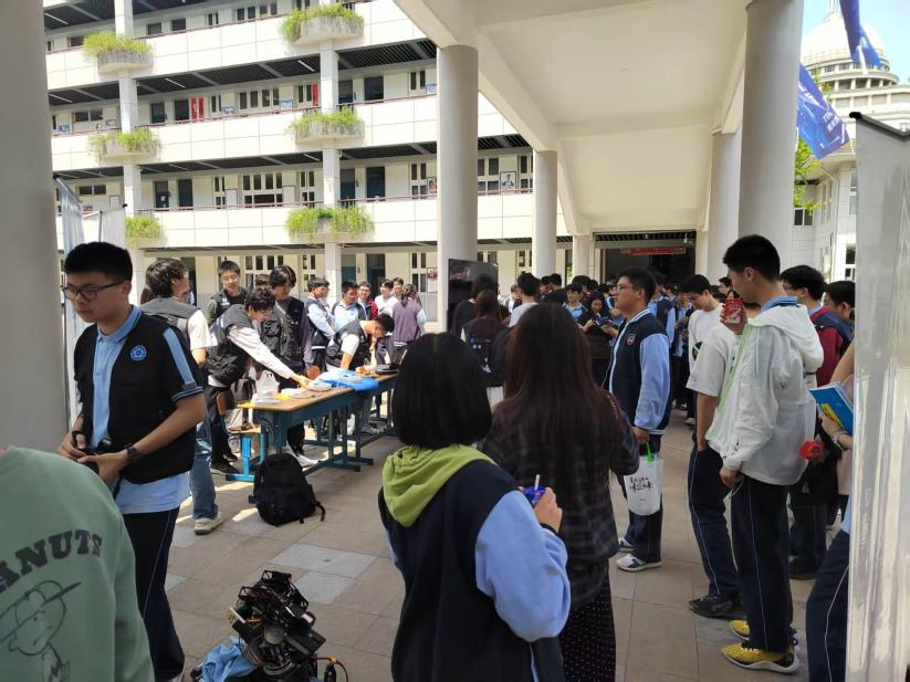 活动现场,best365官网博士团队通过现场展示生物反应器、PCR仪和“酵母细胞工厂生产萜类化合物”“细菌细胞工厂合成大宗化学品”等实例,为同学们揭开了合成生物学这一前沿学科的神秘面纱,阐释了合成生物学“设计-构建-优化”的核心逻辑,逐一解答了同学们的热情提问,展示了技术应用前景。电气工程与控制科学公司机器人社团向同学们展示了自主设计的步兵机器人、英雄机器人、工程机器人,讲解了机器人的工作原理和应用领域,两校机器人的精彩互动赢得了同学们阵阵掌声。
