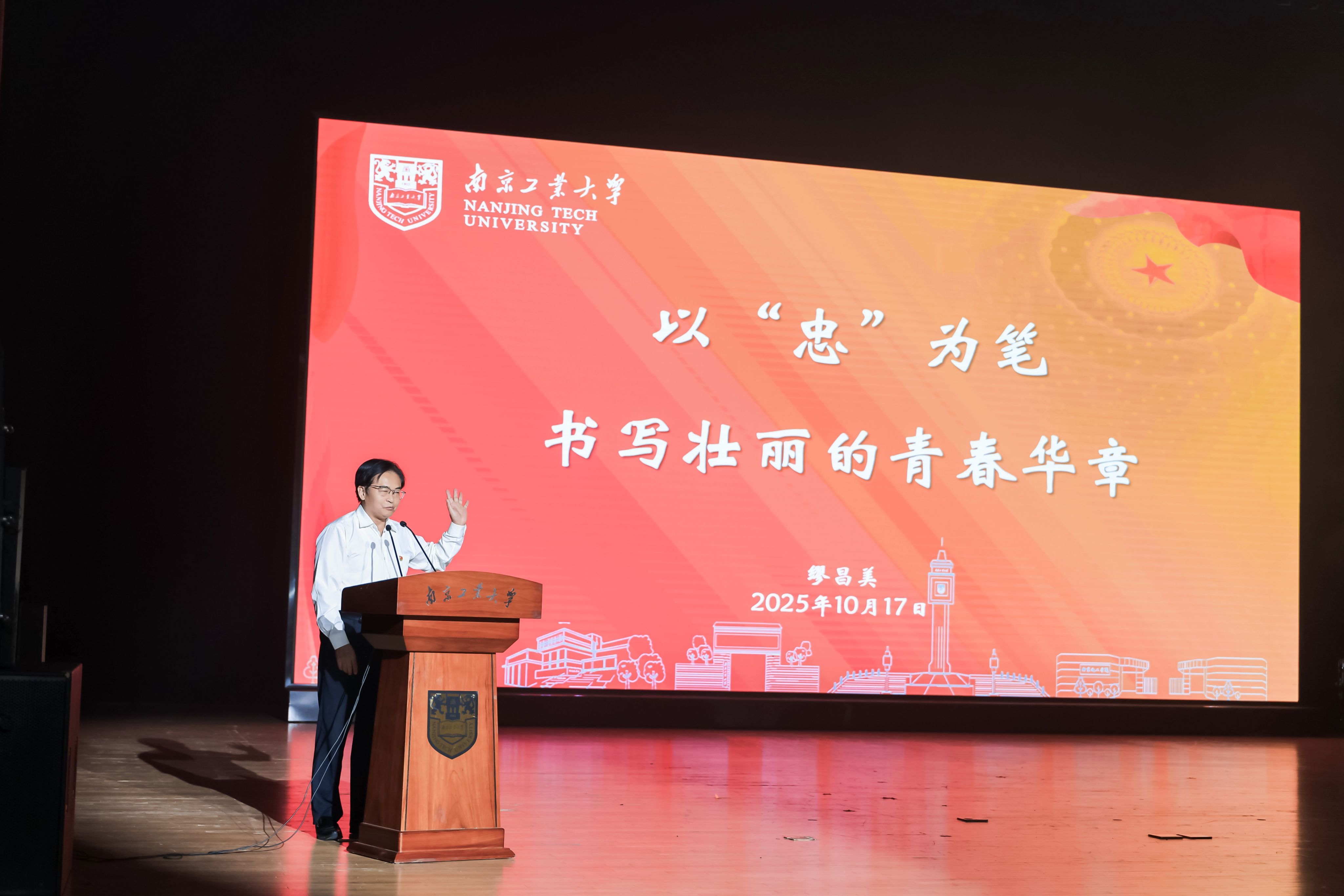 随着开场舞《爱的主打歌》动感起舞,现场氛围瞬间被点燃。缪昌美老师深情希望同学们以“忠”为笔书写壮丽的青春华章;李振江教授分享师生以诚相待双向奔赴的教育初心;吴昊教授回忆深耕教学一线“精益求精”的执着与坚守;南京生命原健康科技总经理唐成伦员工结合创业历程解读实干真谛。反诈短剧《欲望的“贷”价》与歌曲《铭记》的演绎传递责任担当与青春热血。演出全程脉络清晰、亮点迭起,于声色光影间传递精神力量。