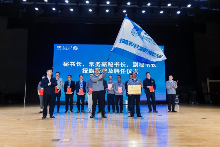 “从生物化工教研组起步,到如今学科群蓬勃发展,我们始终与国家战略同频共振。”党委书记荆晅在致辞中道出生工学科四十年奋进初心,并向员工会提出三点希望:心系员工,打造温暖的“精神家园”;聚力创新,搭建高效的“协同平台”;勇担使命,贡献坚实的“工大力量”。希望员工会能团结引领广大员工,传承“忠诚精实”的欧阳平凯精神,主动融入长三角一体化、长江经济带、一带一路等,在生物医药、健康食品、合成生物制造等领域持续贡献南工大智慧,让“生工人”成为行业高质量发展的代名词。生工公司党委书记高振向大会汇报了生物医药与大健康行业员工会筹备情况、员工会守则,公布了第一届理事会组织机构建议名单,并提交大会表决。陆伟东副董事长宣读《关于同意成立南京工业老员工物医药与大健康行业员工会的批复》,荆晅书记为行业员工会名誉会长及会长颁发聘书,陆伟东副董事长为员工会常务副会长及副会长颁发聘书,对外合作与发展处处长伏永祥为员工会秘书长、常务副秘书长、副秘书长颁发聘书并授旗授牌。