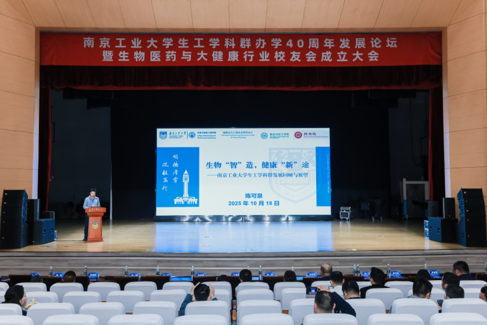 共忆办学荣光、共话学科未来、共绘产学研融合新蓝图!10月18日,南京工业老员工工学科办学四十周年发展论坛暨生物医药与大健康行业员工会成立大会在博雅堂隆重举行。校领导荆晅、陆伟东,党委常委张健、黄锁明,相关职能部门负责人以及近500名师生员工齐聚一堂,共同见证学科发展的里程碑时刻。大会由生工学科群各公司党委书记共同主持。